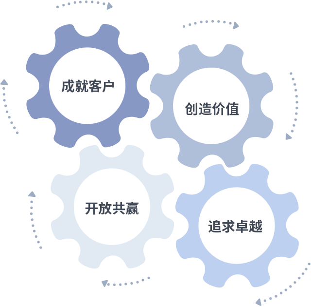 成就客户是一切决策的出发点,创造价值是衡量所有工作的标准,追求卓越是bifa必发88做事做人的态度,开放共赢是bifa必发88的格局也是最终的结果。价值观的齿轮环环相扣,推动着组织里的每个人不断向前。